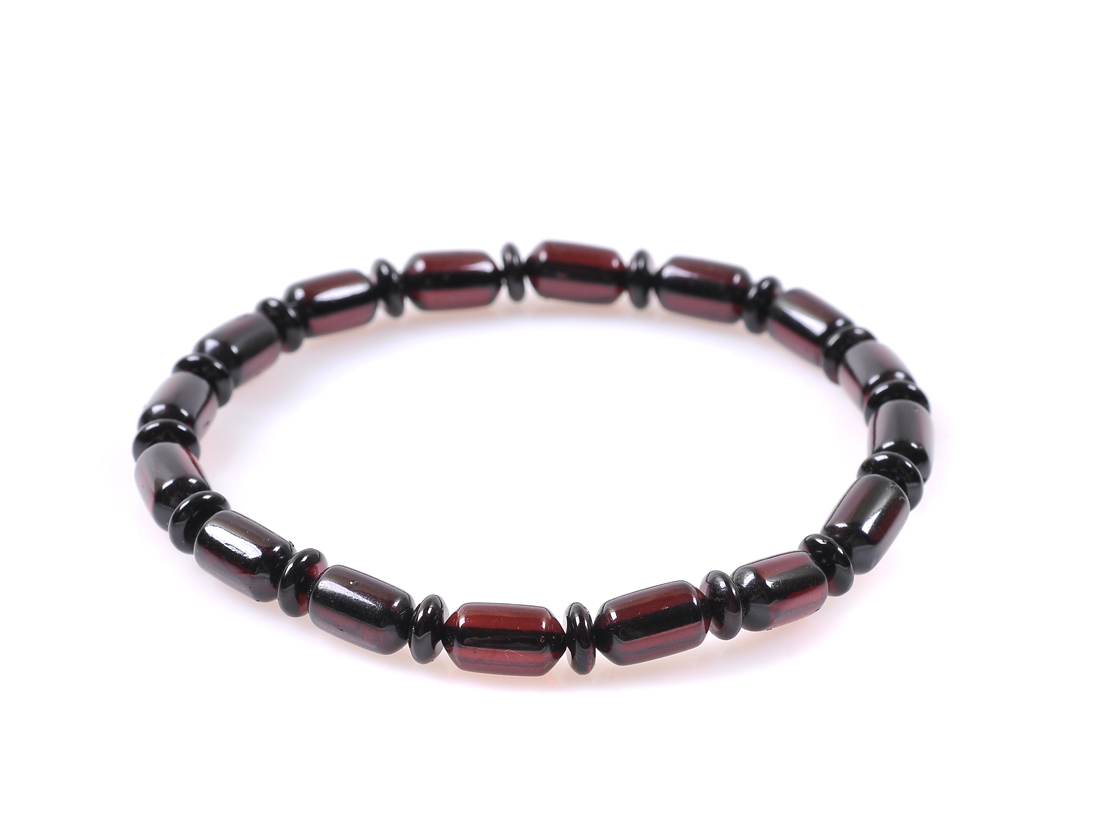 Мъжка гривна кехлибар черни цилиндри от полиран кехлибар, ръчна изработка в цвят черна череша. Изключително лека и елегантна. Гривната е поредица от цилиндри и дискчета, изцяло ръчна изработка.  Характеристики на кехлибарената гривна. Гривната е с гладка повърхност с лек гланц и съвсем лека прозрачност.