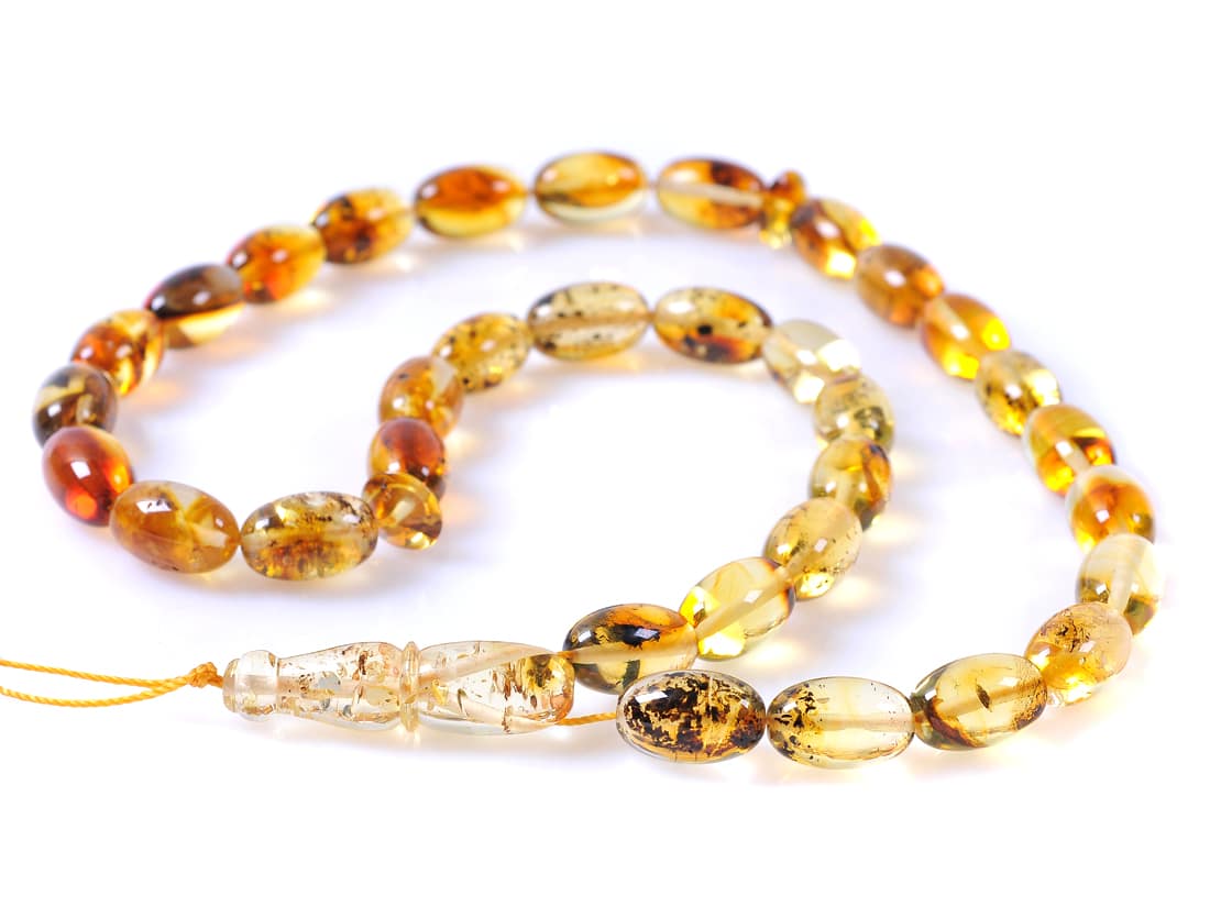 Конфигурация на броеницата от кехлибар: 33 зърна, 2 плоски разделителя + минаре