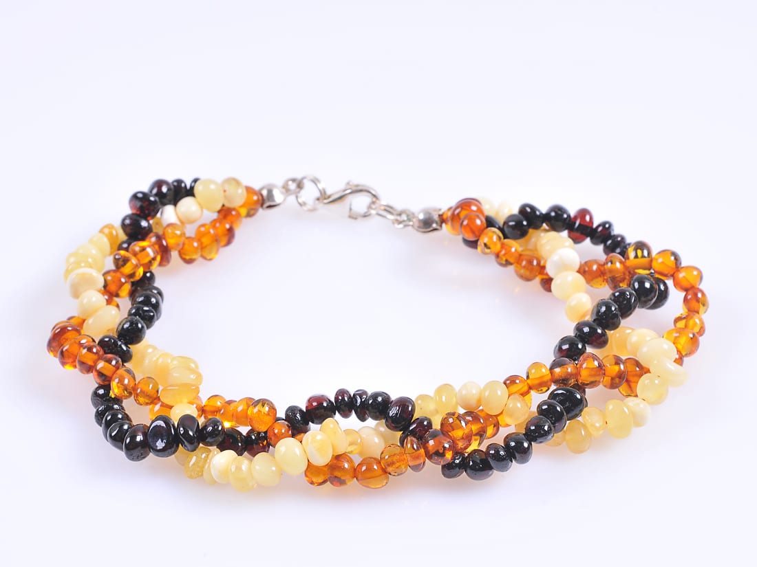Дамска гривна от три реда кехлибарен наниз – фини малки топченца полиран кехлибар в три разновидности,
